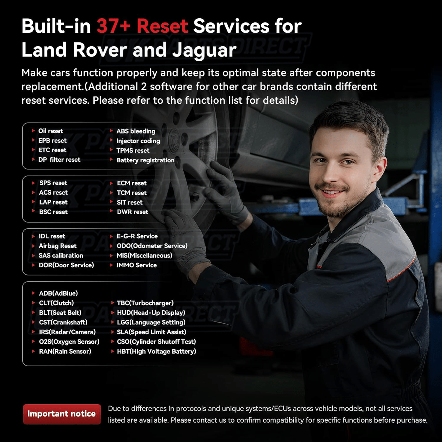 In addition, covers a huge range of Service Functions including Oil Service Reset (OLS), Electronic Parking Brake Reset (EPB), Steering Angle Reset (SAS), Electronic Throttle Reset (ETCS), DPF Resets / Regens (DPF), Battery Registration / Coding (BMS), ABS Brake Bleeding (BLD) and Injector Coding (INJ) on select models**