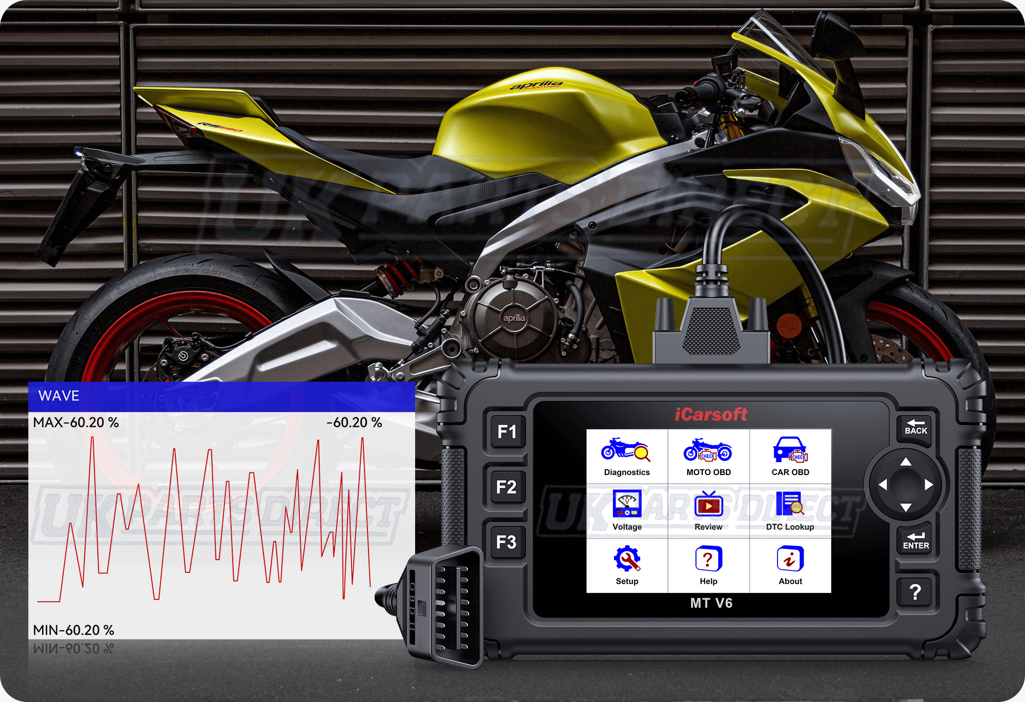 The iCarsoft MT V6 range of Motorcycle Diagnostic Tools offer Full System Manufacturer Specific Diagnostics. Avoiding costly visits to a dealership when you can diagnose, report and clear troublesome fault codes within minutes.