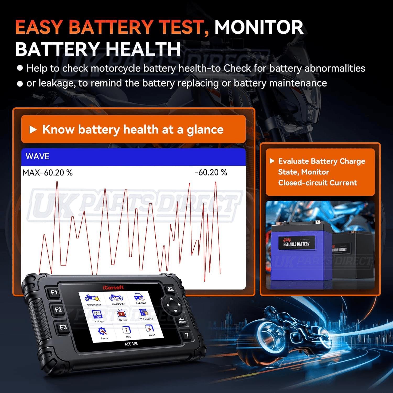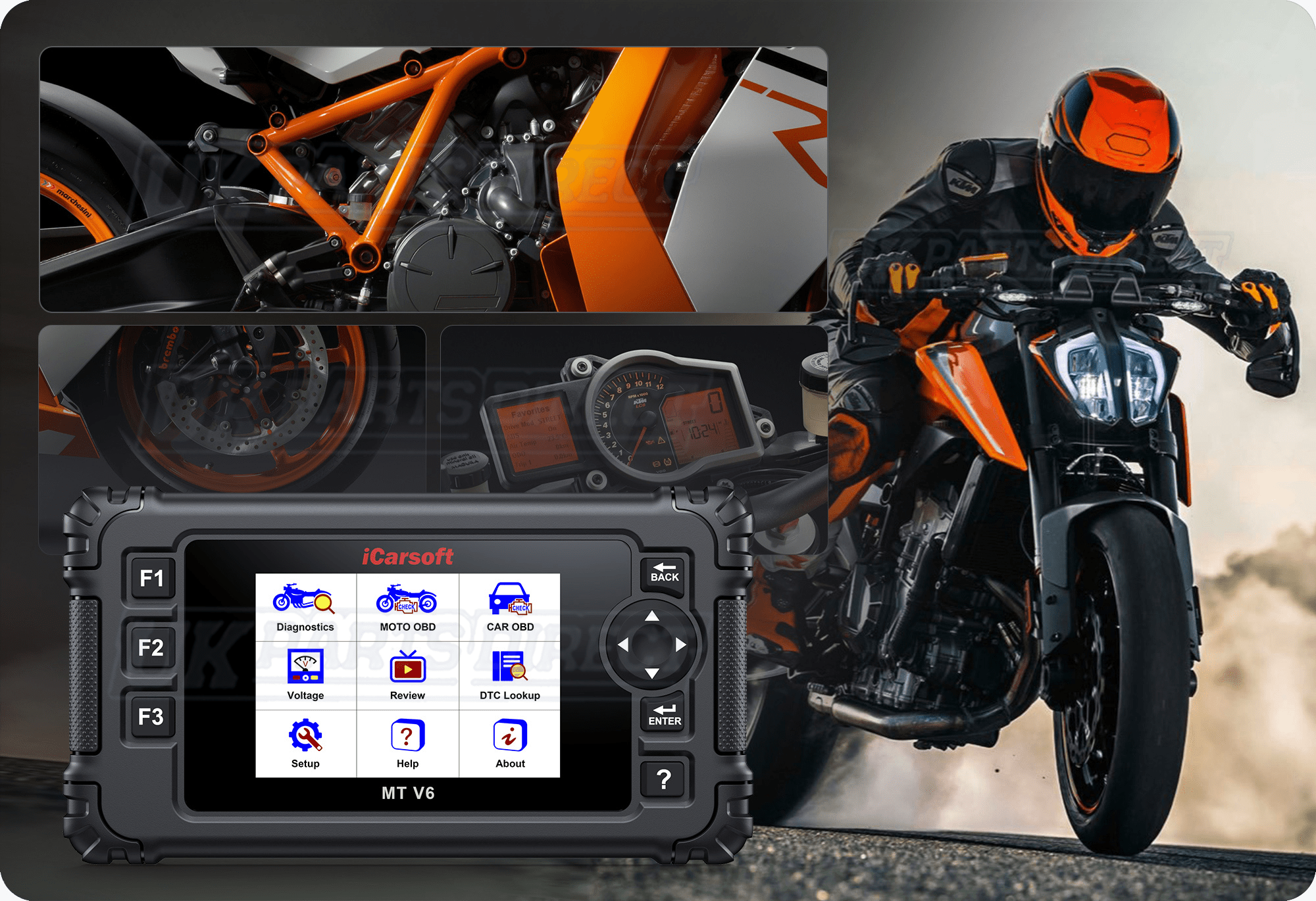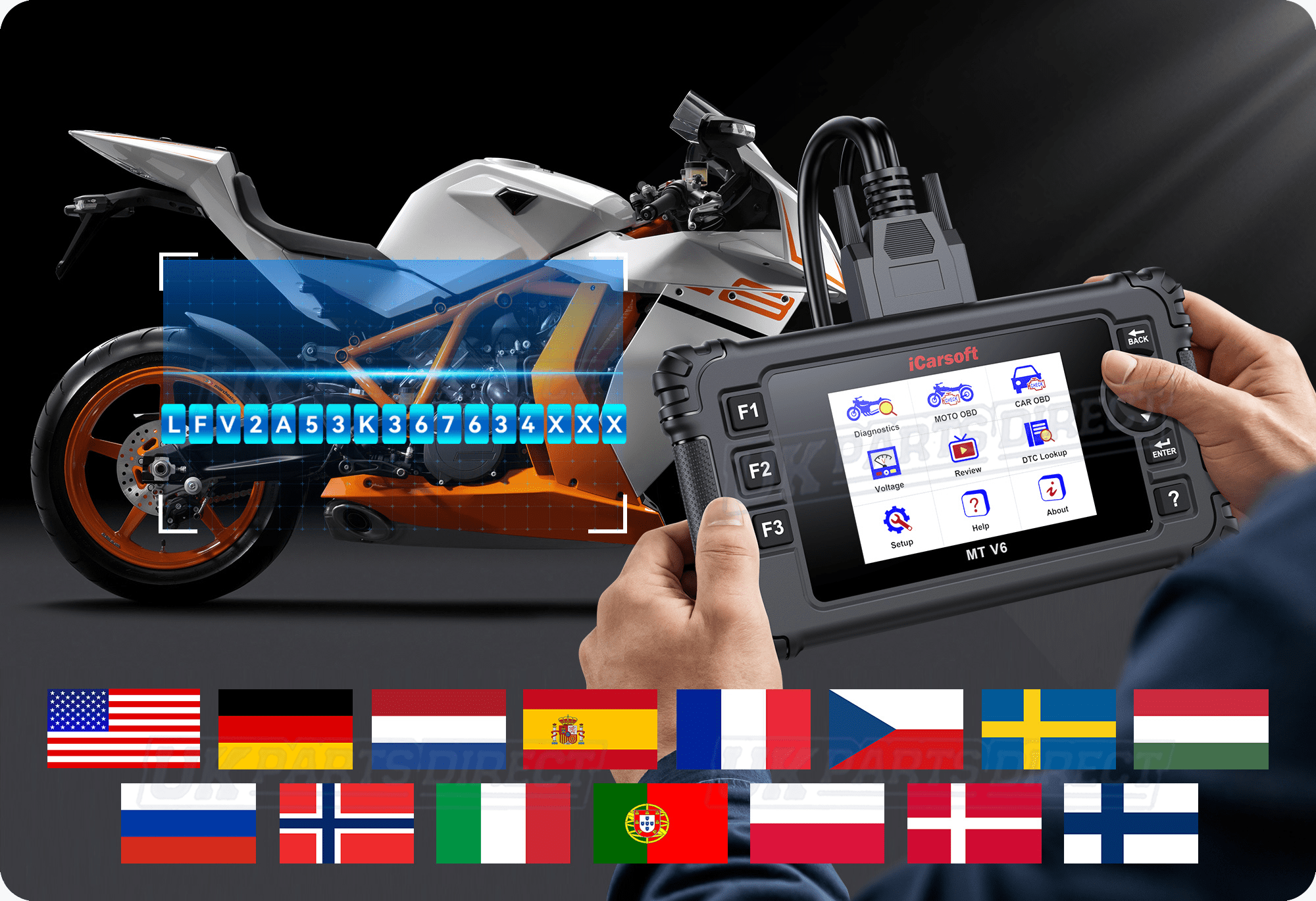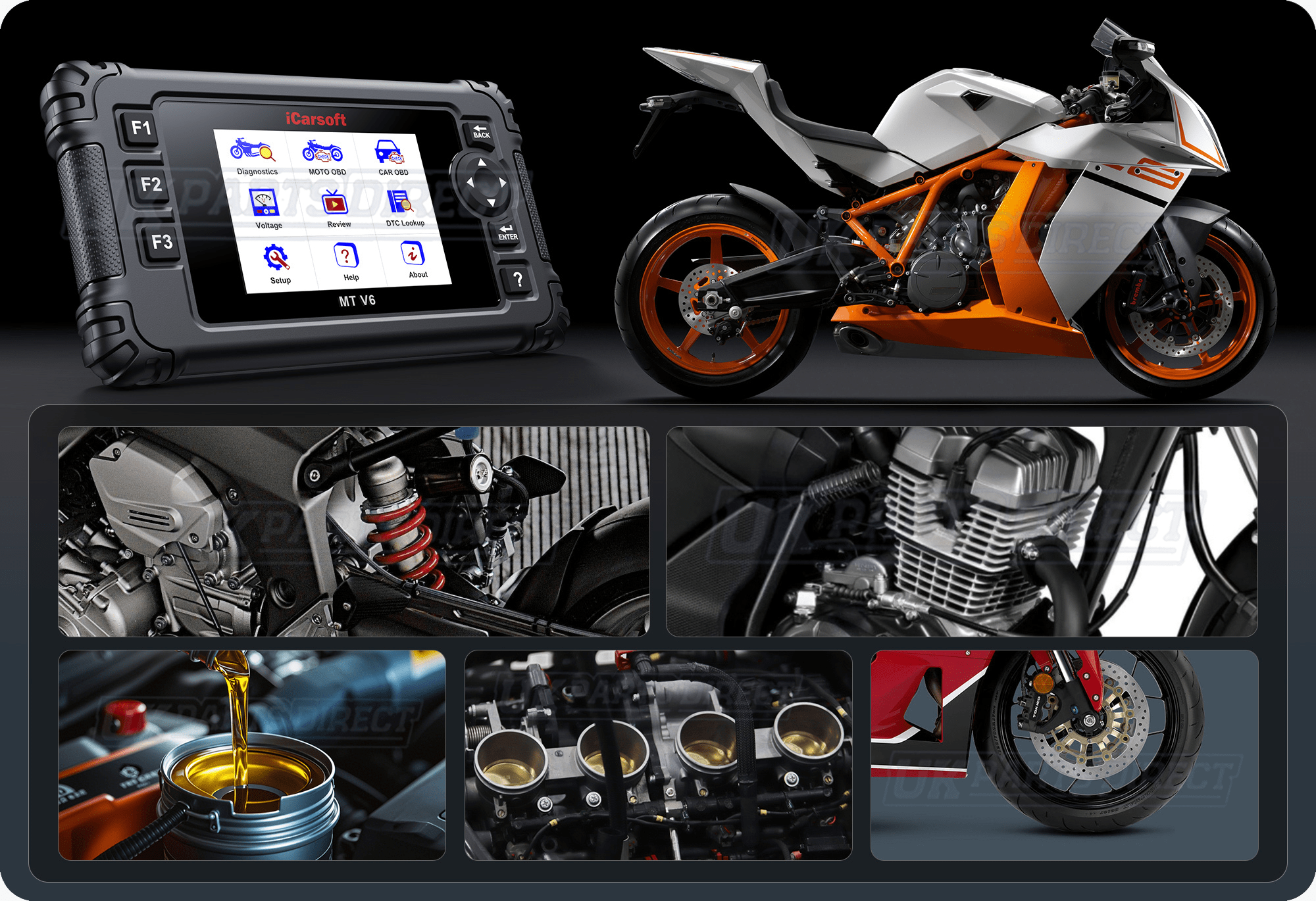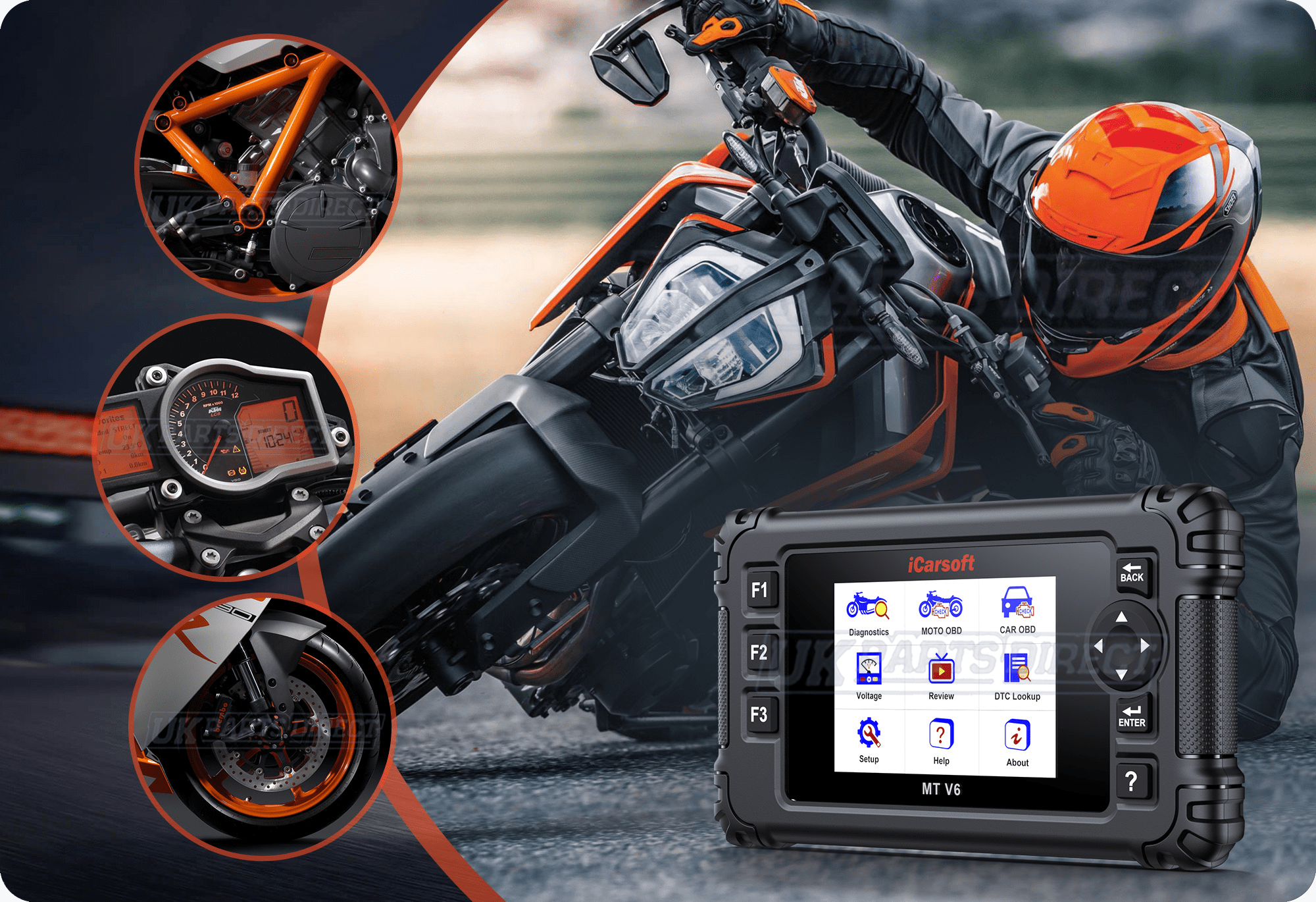 The iCarsoft MT V6 range of Motorcycle Diagnostic Tools offer Full System Manufacturer Specific Diagnostics. Avoiding costly visits to a dealership when you can diagnose, report and clear troublesome fault codes within minutes.