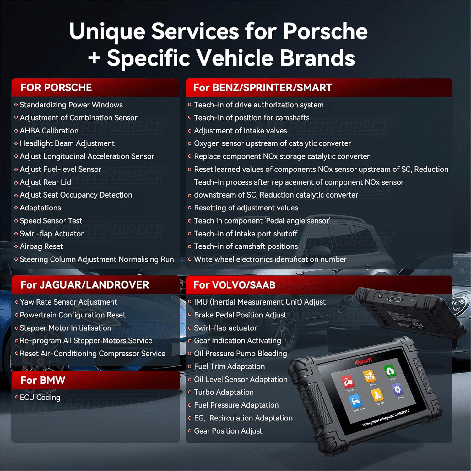 © ukpartsdirect - Descriptions, Part numbers, Photos and Illustrations shown are trademarks and/or copyrights of UK Parts Direct Ltd / iCarsoft UK and use without express written permission of the owners is punishable by law.
