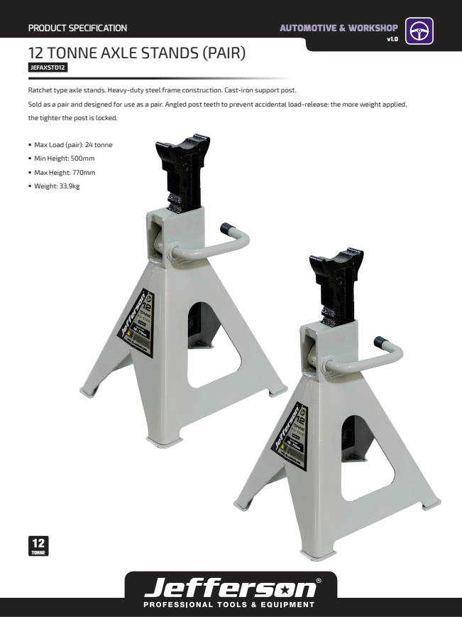 Jefferson 12 Tonne Axle Stands (PAIR) - JEFAXSTD12
