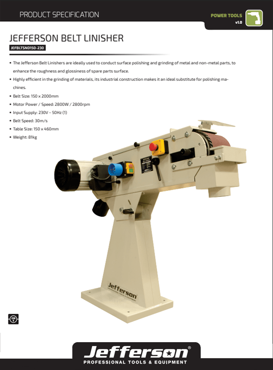 Jefferson 150mm x 2M Belt Linisher 230V - JEFBLTSND150-230