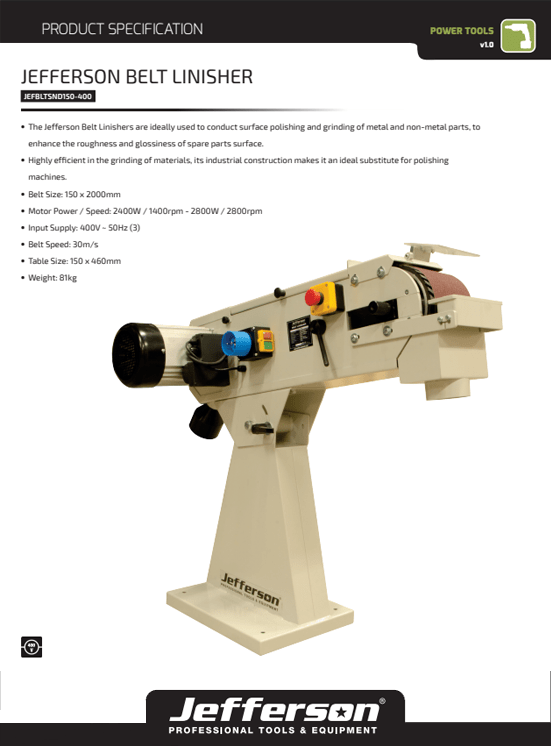 Jefferson 150mm x 2M Belt Linisher 400V - JEFBLTSND150-400