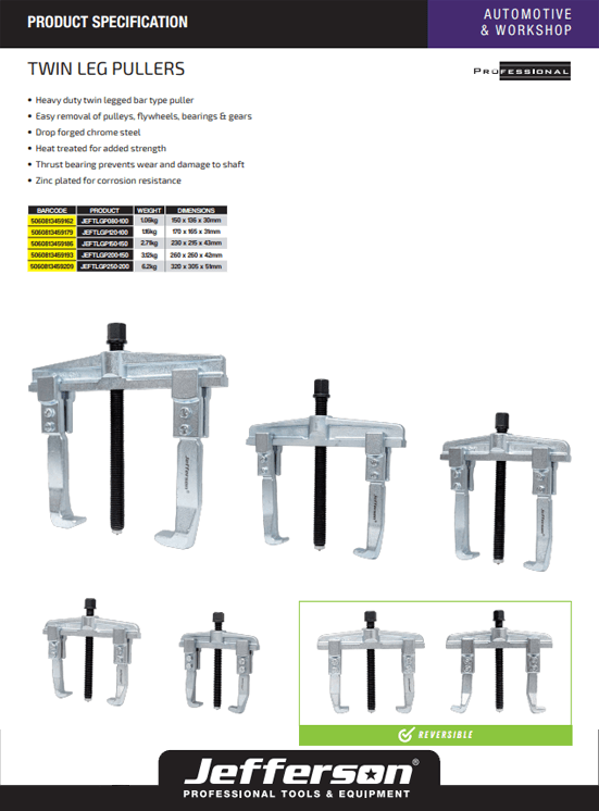 Jefferson 200 x 150mm Twin Leg Gear Puller - JEFTLGP200-150
