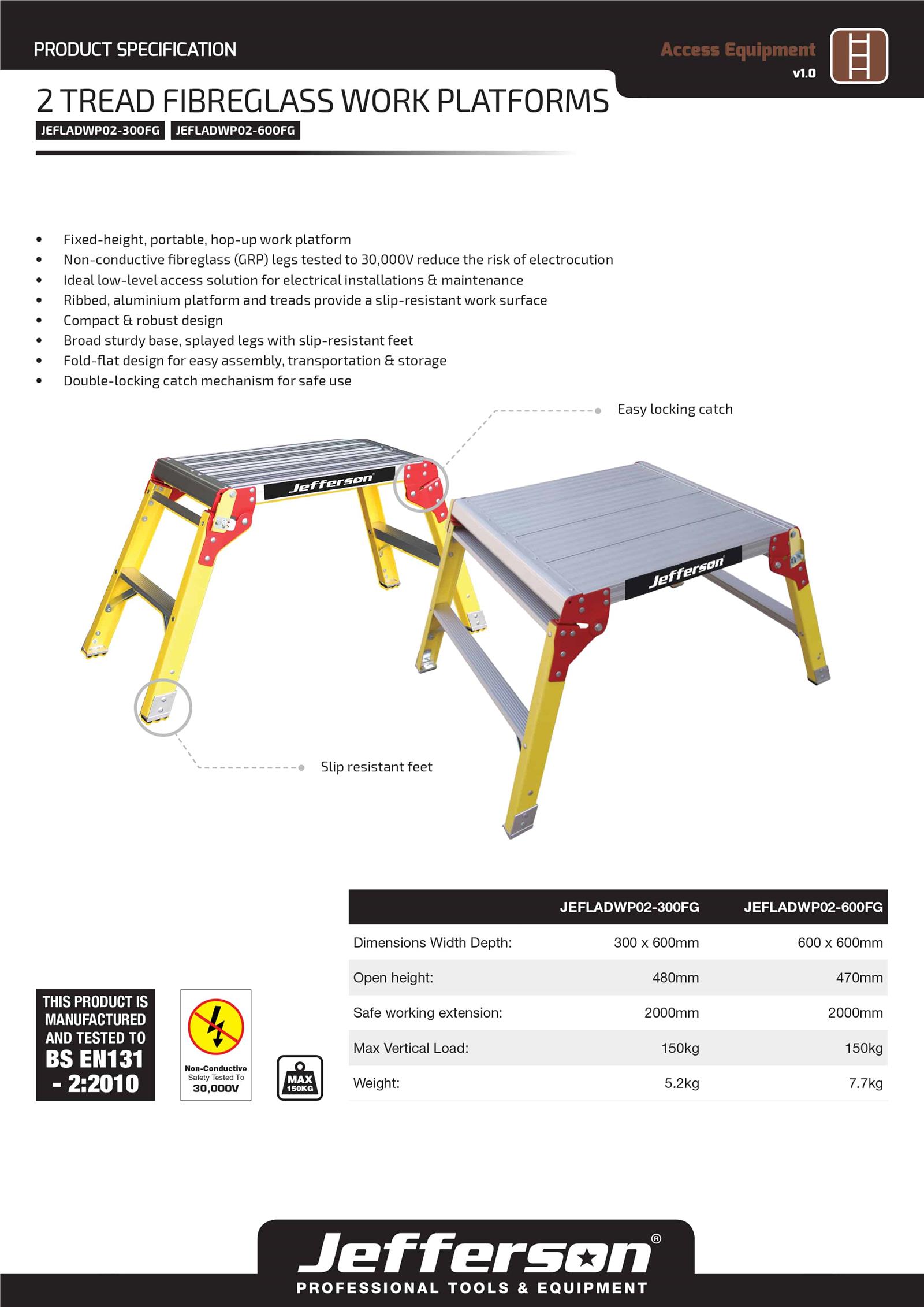 Jefferson 300mm Wide 2 Tread Fibreglass Hop Up Work Platform - JEFLADWP02-300FG