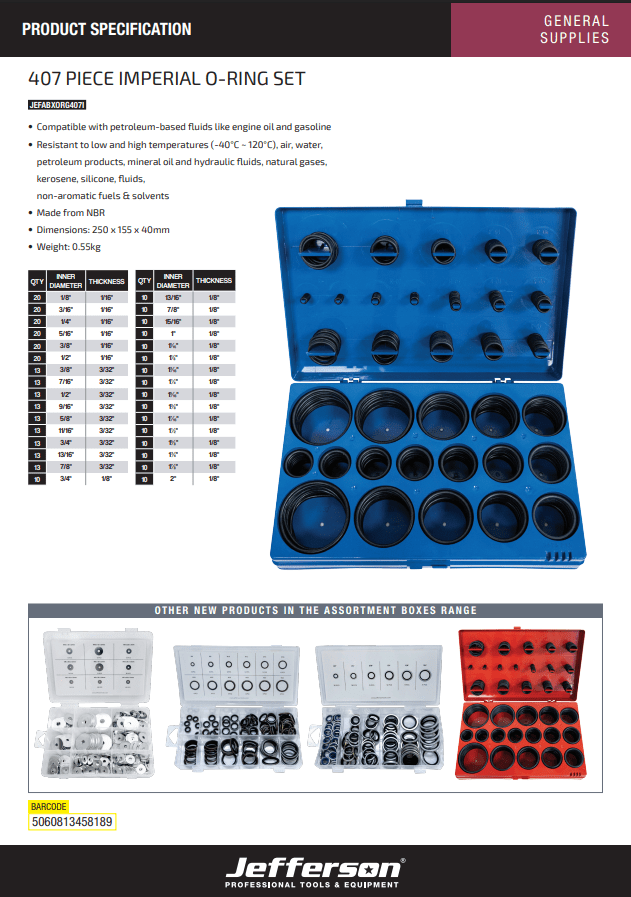 Jefferson 407 Piece Imperial O-Ring Set - JEFABXORG407I