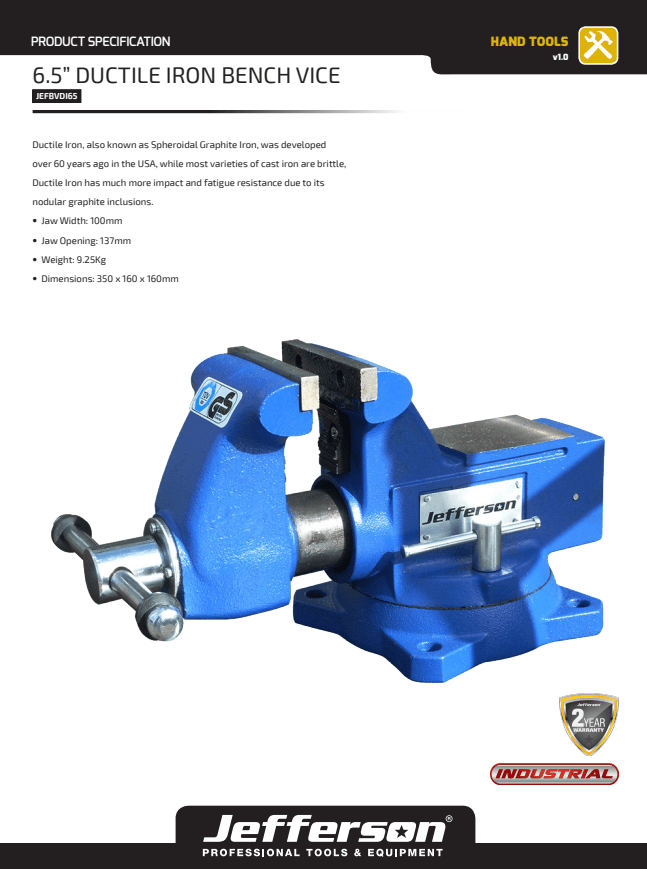 Jefferson 6.5" Workshop Bench Vice | HEAVY DUTY | 2 YEAR WARRANTY - JEFBVDI65