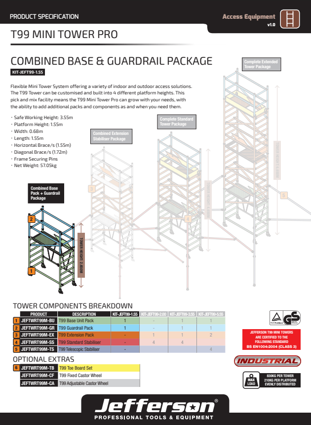 Jefferson Flexible Mini Tower System | Base & Guardrail Package - KIT-JEFT99-1.55