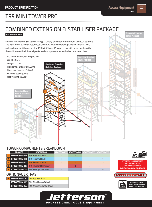 Jefferson Flexible Mini Tower System | Extension & Stabiliser Package - KIT-JEFT99-2.00