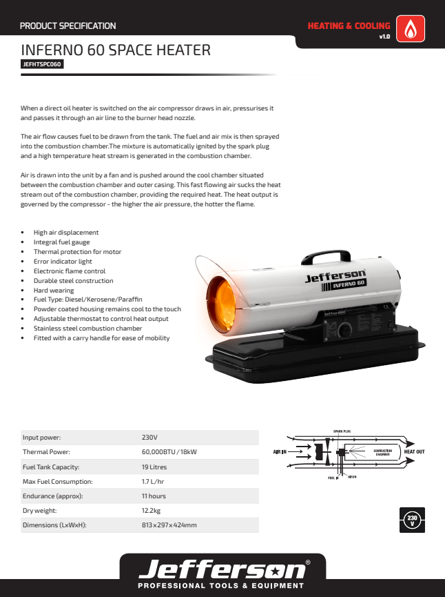 Jefferson 18kW Inferno 60 Diesel / Kerosene / Paraffin Space Heater 60,000 BTU - JEFHTSPC060