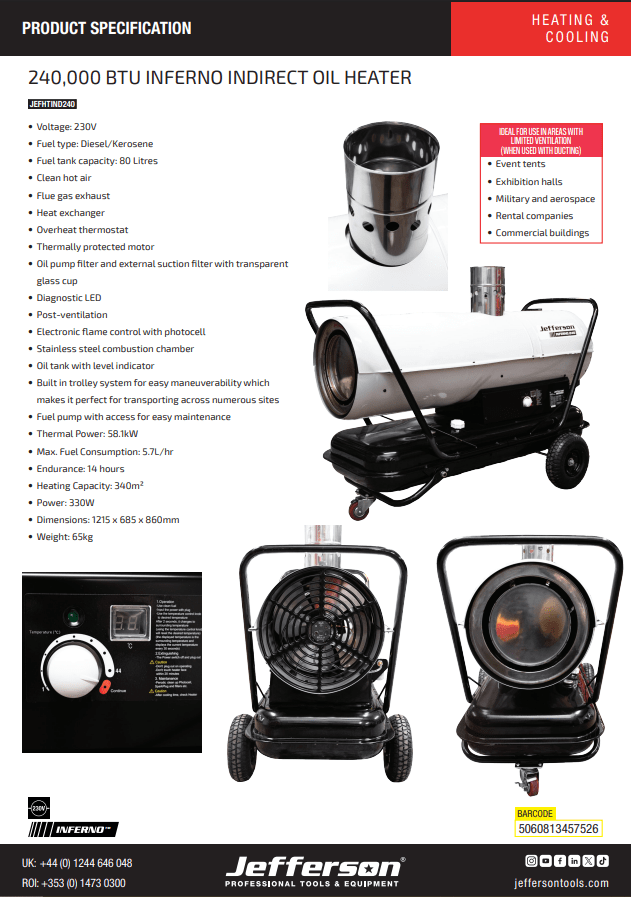 Jefferson Inferno Indirect Diesel / Kerosene Oil Heater 240,000 BTU - JEFHTIND240