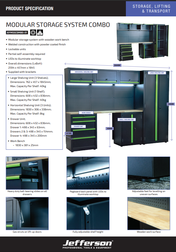 Jefferson Modular Workshop Garage Tool Storage System Combo | LED LIGHTS - JEFMSSCOMBO-01