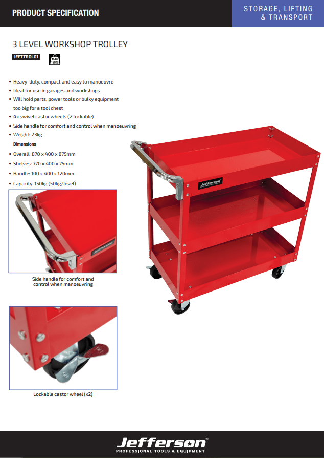 Jefferson Red Heavy Duty Workshop Trolley | 150KG CAPACITY - JEFTTROL01