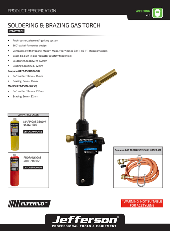 Jefferson Soldering & Brazing Gas Torch - JEFGASTORCH