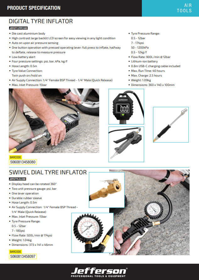 Jefferson Swivel Dial Tyre Inflator - JEFGTYLCLC09