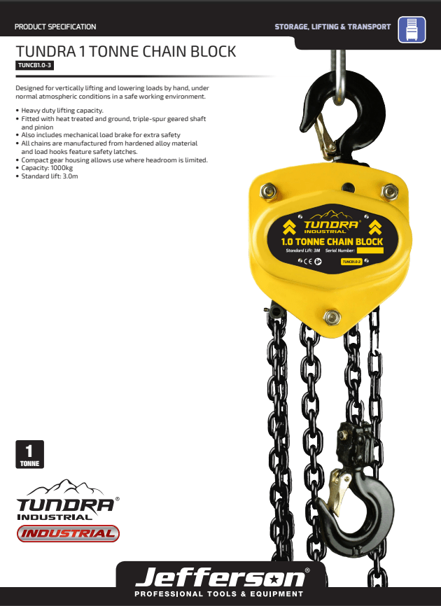 Jefferson Tundra 1 Tonne Chain Block - TUNCB1.0-3