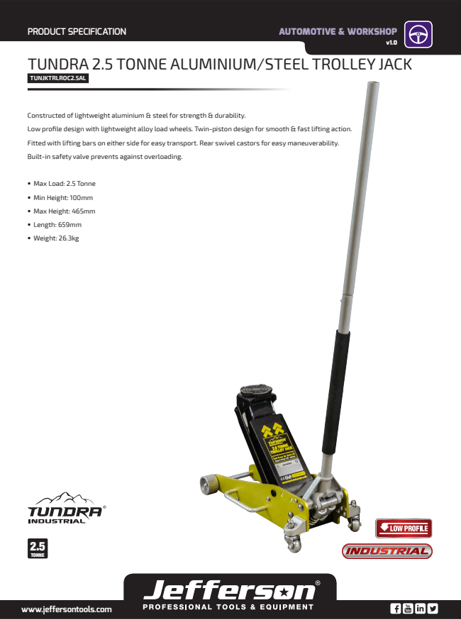 Jefferson Tundra 2.5 Tonne Aluminium / Steel Trolley Jack - TUNJKTRLROC2.5AL