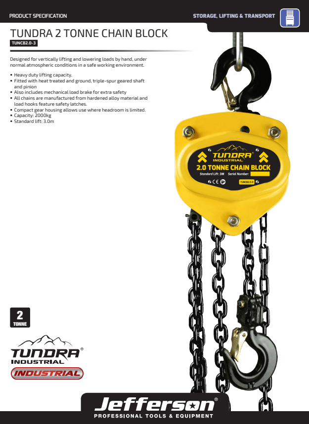 Jefferson Tundra 2 Tonne Chain Block - TUNCB2.0-3
