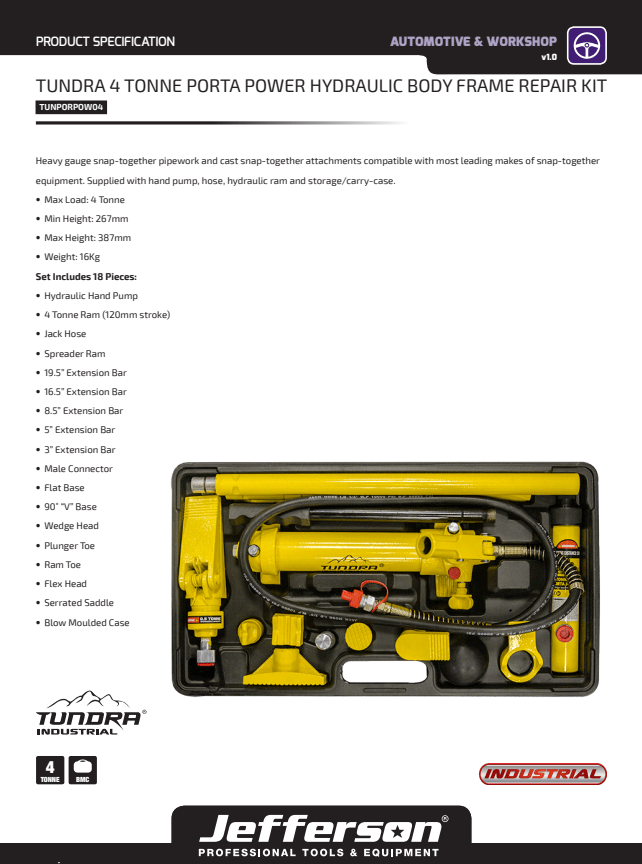 Jefferson Tundra 4 Tonne Porta Power Hydraulic Body Frame Repair Kit - TUNPORPOW04