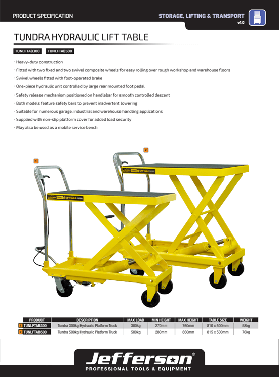 Jefferson Tundra 500kg High Lift Table - TUNLFTAB500