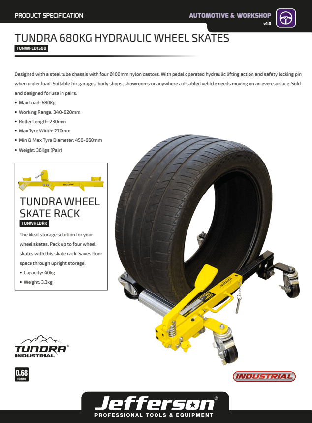 Jefferson Tundra 680kg Hydraulic Wheel Skates - TUNWHLD1500