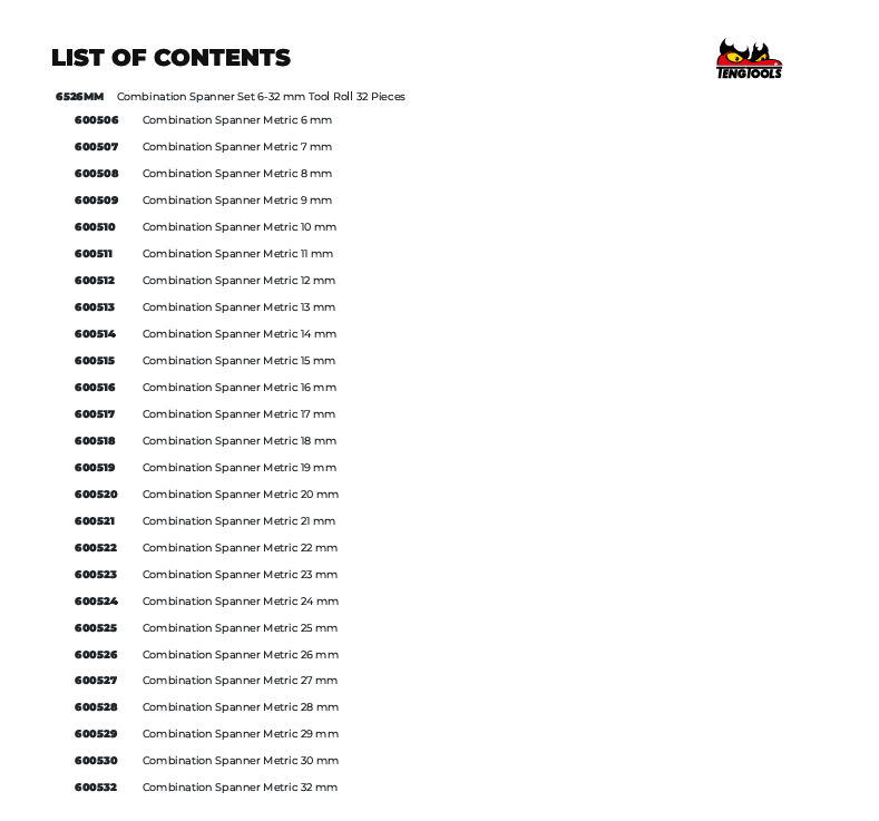 Teng Tools 6526MM 26 Piece Metric Combination Spanner Set 6-32mm Tool Roll