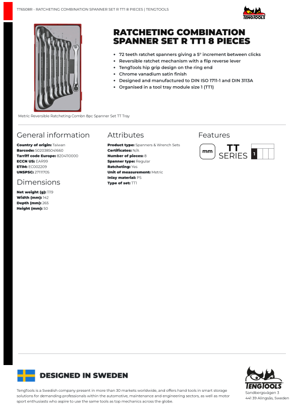 Teng Tools is a Swedish Company established in 1985, offering hand tools in smart storage solutions for demanding professionals within the automotive, maintenance and engineering sectors, as well as motorsport enthusiasts who aspire to use the same tools as top mechanics across the globe.