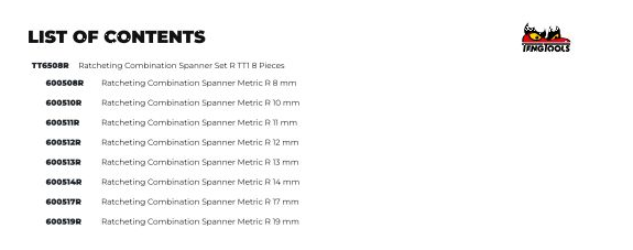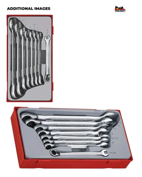 Teng Tools TT6508R 8 Piece Metric Ratchet Combination Spanner Set in Tray